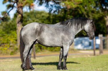 FBE Frio N Blue AKA "Frio" is a 2019 Draft Cross gelding who is registered with the IDSHR! He is a beautiful blue roan! He is great on the trails, in the arena, and a blast to ride! This sweet gelding we have has the pleasure of riding and training since 2022. He is great with the kids, loves affection and his person. He may be big, but he will ride like a little horse! His siblings have been very successful in the dressage!